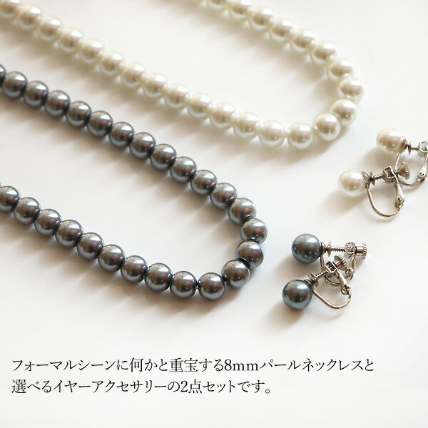 一番定番の8mmガラスパールを使ったネックレスとピアスまたはイヤリングのセットになります。
