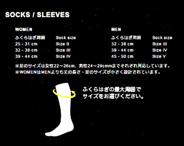 サイズの目安 ふくらはぎ周囲25-31cm 女性II(足のサイズ22-26cm) 男性- ふくらはぎ周囲32-38cm 女性III(足のサイズ22-26cm) 男性III(足のサイズ24-29cm) ふくらはぎ周囲39-44cm 女性IV(足のサイズ22-26cm) 男性IV(足のサイズ24-29cm) ふくらはぎ周囲45-50cm 女性- 男性V(足のサイズ24-29cm)
