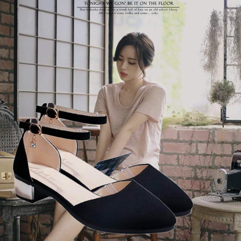 安定感 ローヒール ストラップ パンプス レディース おしゃれ チャーム 付き 歩きやすい シューズ 靴 美脚 ポインテッドトゥ フォーマル ピンヒール 厚底 くつ シンプル アンクル サンダル 春 夏(ブラック, 24.0〜24.5 cm)