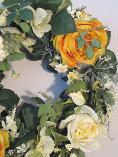 サイズ:Φ300xD120重量:約230g 材質:シルクフラワー他カラー:イエロー系※1点1点手作りの為、お花の種類が 若干写真と異なる場合もございます。