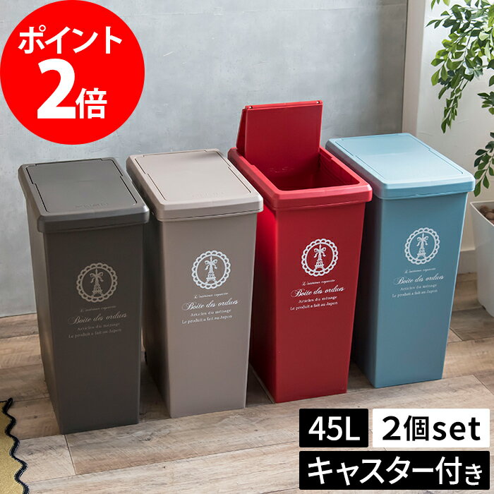 ゴミ箱 45L (2個セット) スライドペール フタ付き キャスター付き 分別 スリム おしゃれ 可愛い 屋外 縦型 ふた付き 45リットル キッチン リビング カウンター ごみ箱 ごみばこ ダストボックス