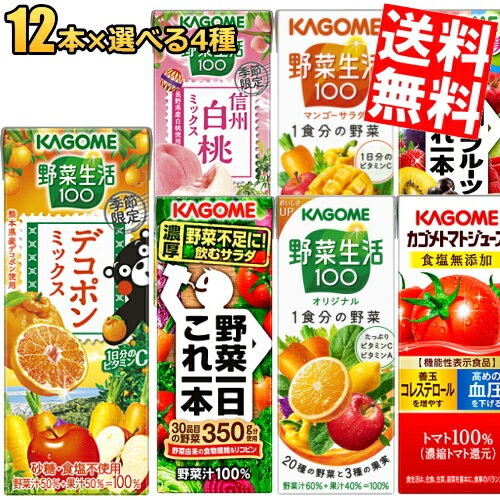 【12本単位で4種類を選べる】【送料無料】カゴメ200ml紙パックシリーズ選べる48本セット[野菜ジュース トマトジュース 野菜生活100]※北海道800円・東北400円の別途送料加算